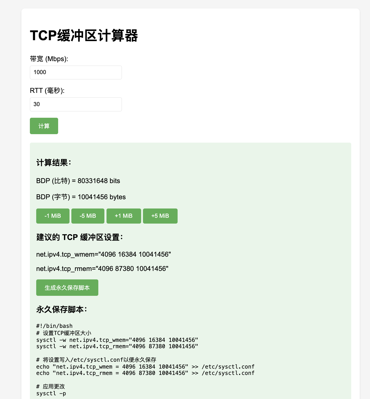 在线计算 tcp 参数