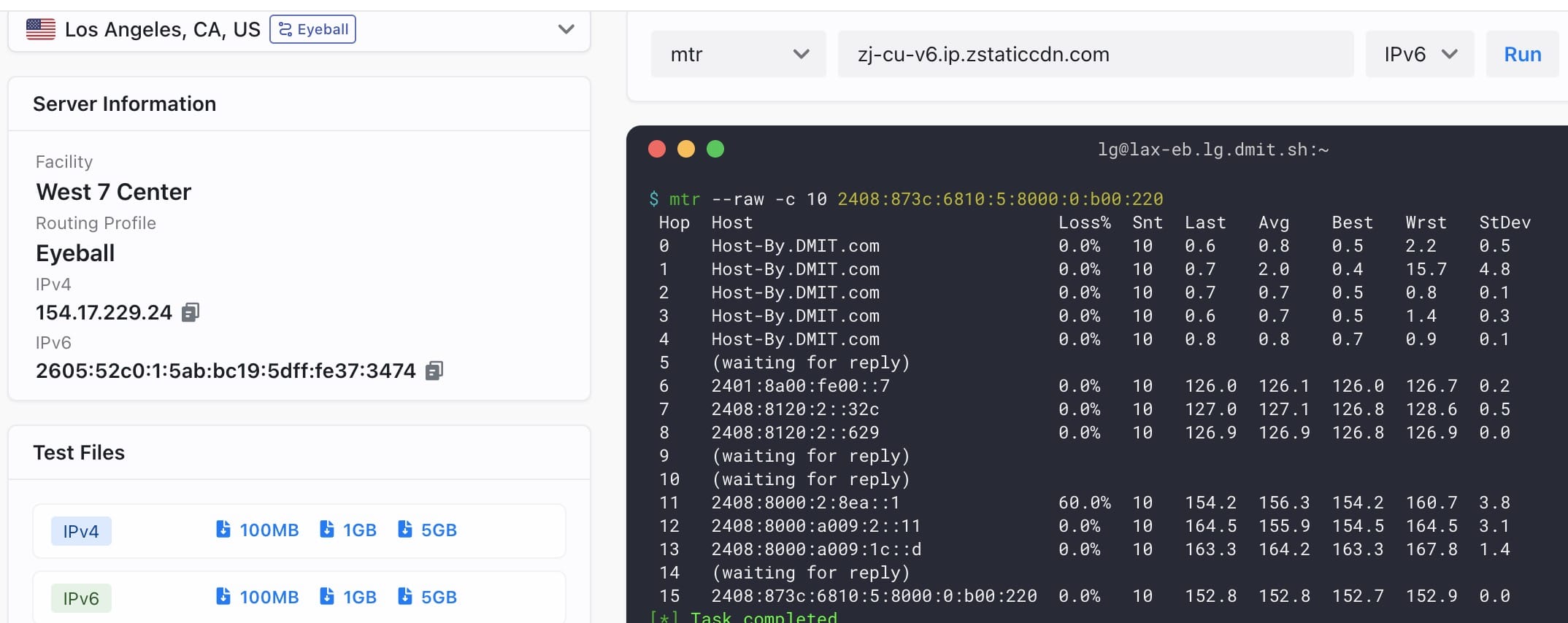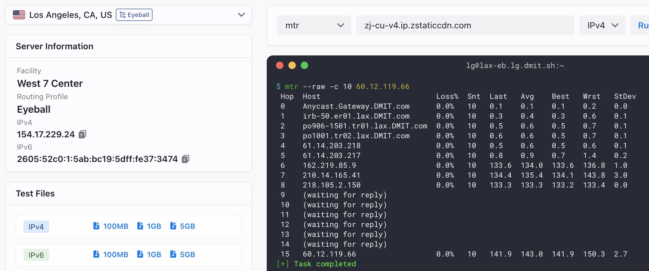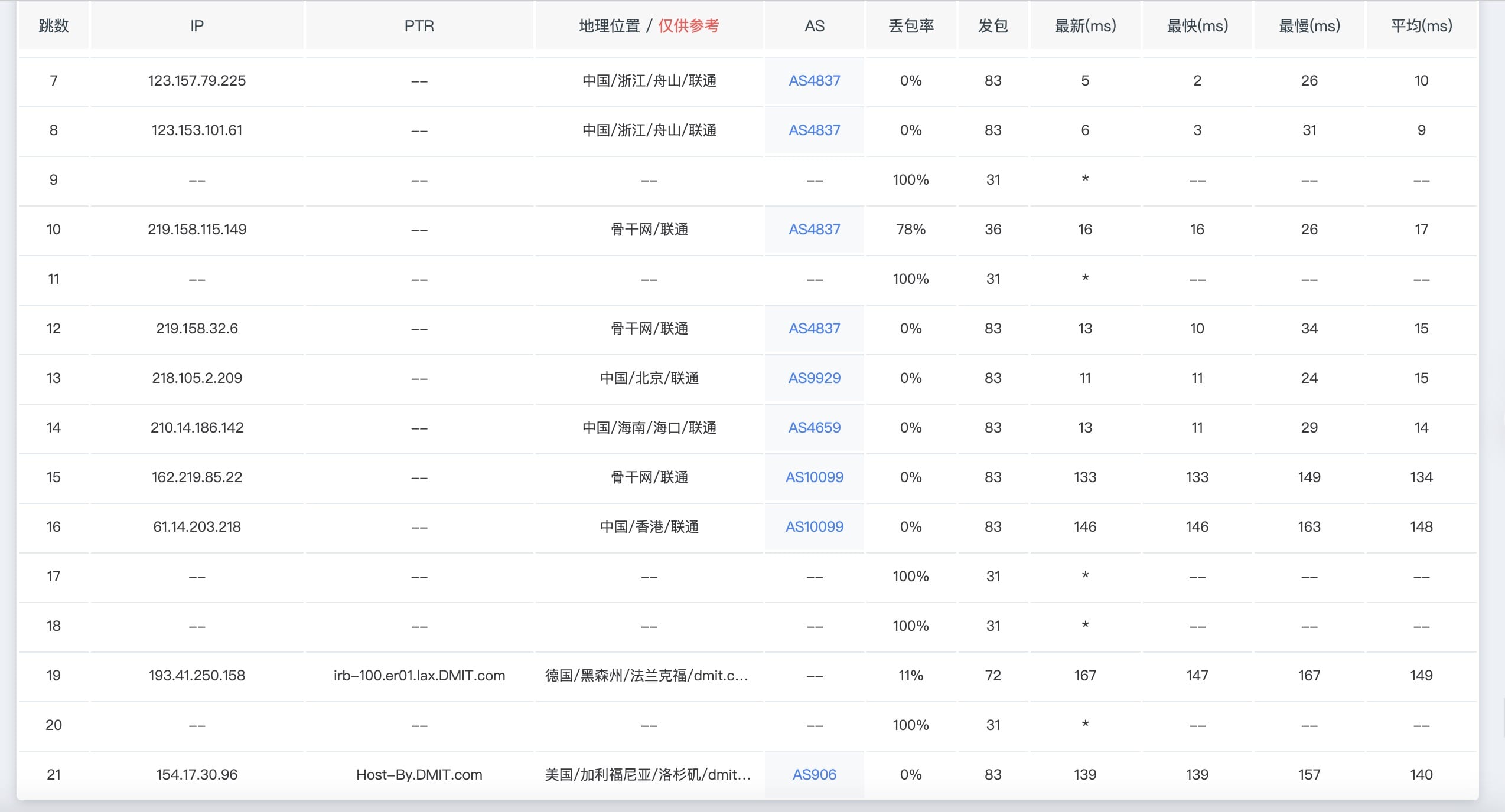 联通v6 回程mtr eb胜出