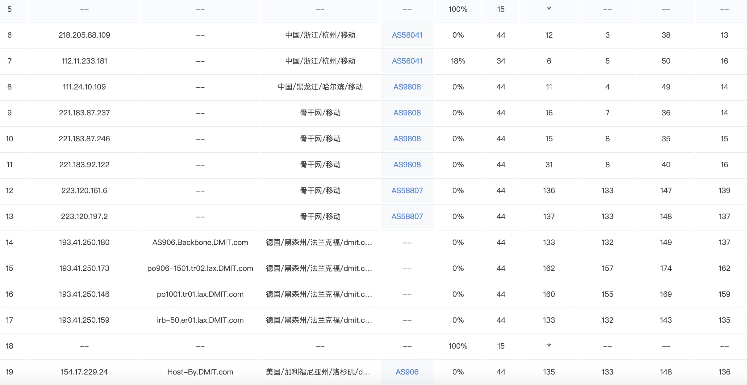 浙江地区为例,进行三网回程延时和去程测试,时间 GMT+8 2025.12.18 21:00-22:00